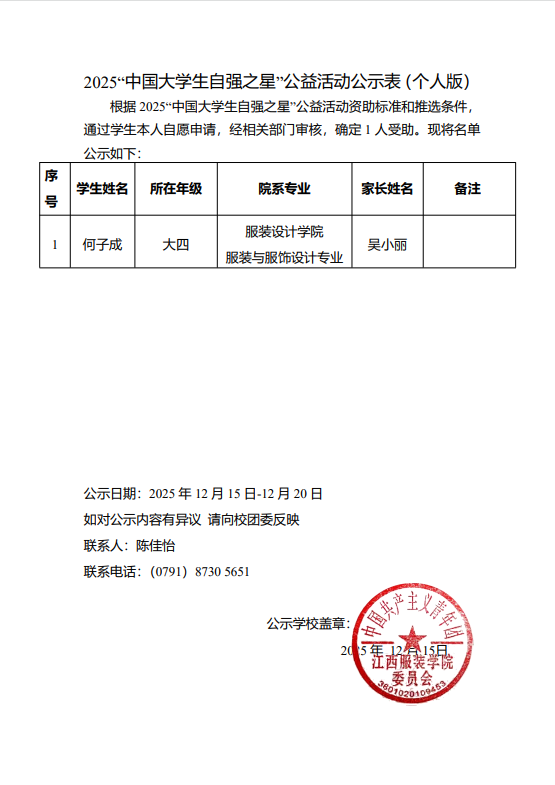 公示|江西服装学院2025年大学生志...