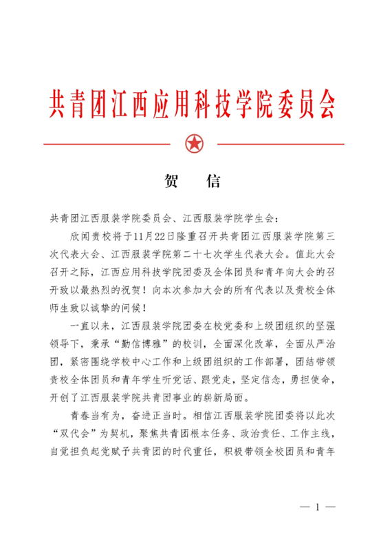共青团江西应用科技学院委员会向我校发来贺信