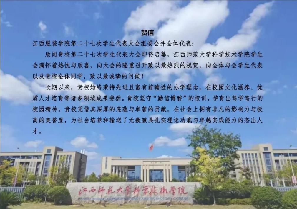 江西师范大学科学技术学院学生会向我校发来贺信