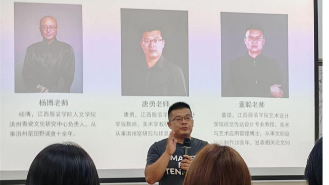 老师们指出,江西洪州窑作为唐代六大青瓷名窑之一,窑址分布在江西省丰城市赣江两岸,自东汉晚期延续至宋元,薪火相传逾八百年,是中国陶瓷史上的重要篇章。洪州青瓷社始终秉持“传承千年瓷韵,创新青瓷文化”的宗旨,致力于让古老技艺在青年手中焕发新彩。一方面深入挖掘洪州青瓷背后的历史故事、原料配方奥秘和烧制技艺;另一方面以现代设计理念赋予其当代表达,使青瓷精神在青春语境中延续与重生。