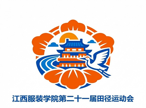 设计理念:本会徽以地域文化与体育精神为核心,融合江西符号与运动活力,传递赛事精神。核心视觉为江西标志性古建筑,搭配灵动仙鹤,象征地域底蕴与高洁品格;橙红花瓣形轮廓呼应江西特色花卉,寓意蓬勃朝气;蓝色跑道线条环绕建筑,既体现田径运动属性,也暗喻赣江文脉绵延;太阳与祥云点缀其间,烘托光明、祥和的赛事氛围。整体以对称构图呈现稳重感,色彩选用蓝橙撞色,既彰显学院专业气质,又迸发青春活力。建筑代表江西深厚文化根基,仙鹤寓意学子志存高远,跑道象征拼搏进取的体育精神,三者结合,传递“扎根赣鄱、逐梦赛场”的核心内涵,既彰显地域特色,又契合“更快、更高、更强”的体育精神,展现江服学子昂扬向上的风貌。