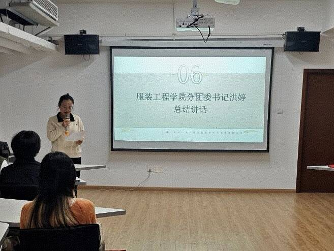 最后,由学院分团委书记洪婷作总结讲话。她指出,本次活动通过“沉浸式+专业化”的形式,让同学们深入触摸到宋锦的千年底蕴,达到了“以活动促认知、以实践强担当”的预期效果,服装工程学院将持续以专业为依托,搭建非遗文化传承与创新平台,引导青年学子从传统工艺中汲取民族根脉与文化自信,用专业所长推动非遗文化创造性转化、创新性发展,让千年宋韵在青春力量中焕发新光彩。