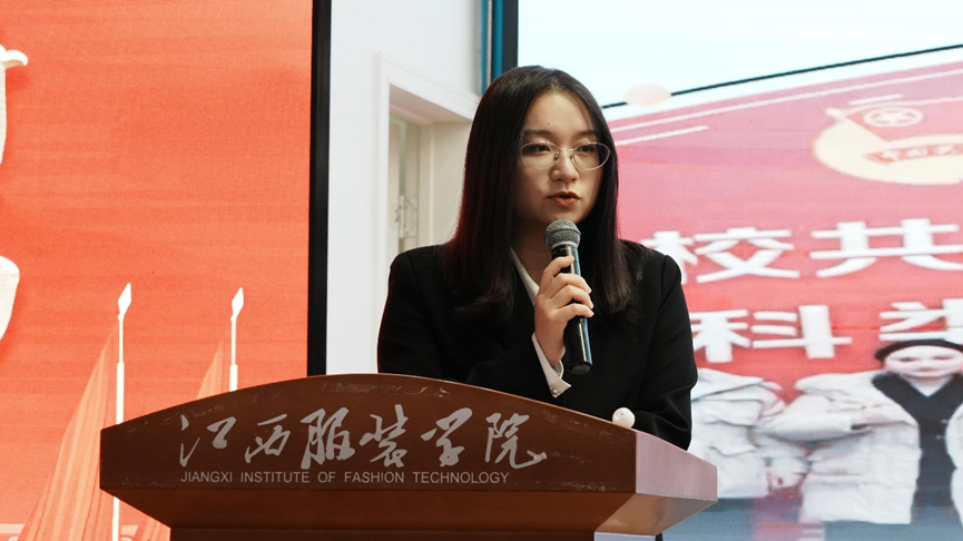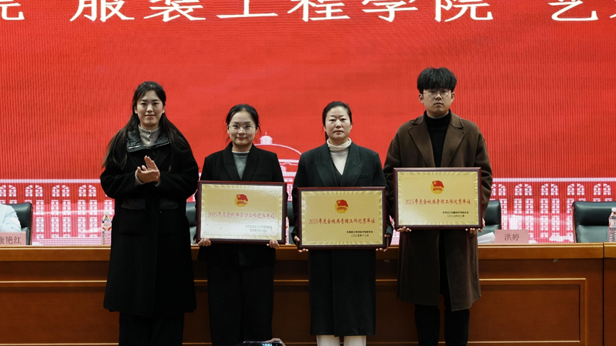 学院共青团工作先进单位代表服装设计学院分团委书记张敬玲发言。她表示,过去一年,服装设计院分团委以四大抓手推进工作:思想引领上开展学习活动、打造特色社团传红色基因;组织建设中夯实基础、育骨干,团课作品获省级奖;实践育人里办多类活动,志愿、赛事均获佳绩;特色活动立足专业,学生斩获奖项。她坦言工作存在不足,未来将深化融合、提升服务,感谢各方支持并将继续奋进。