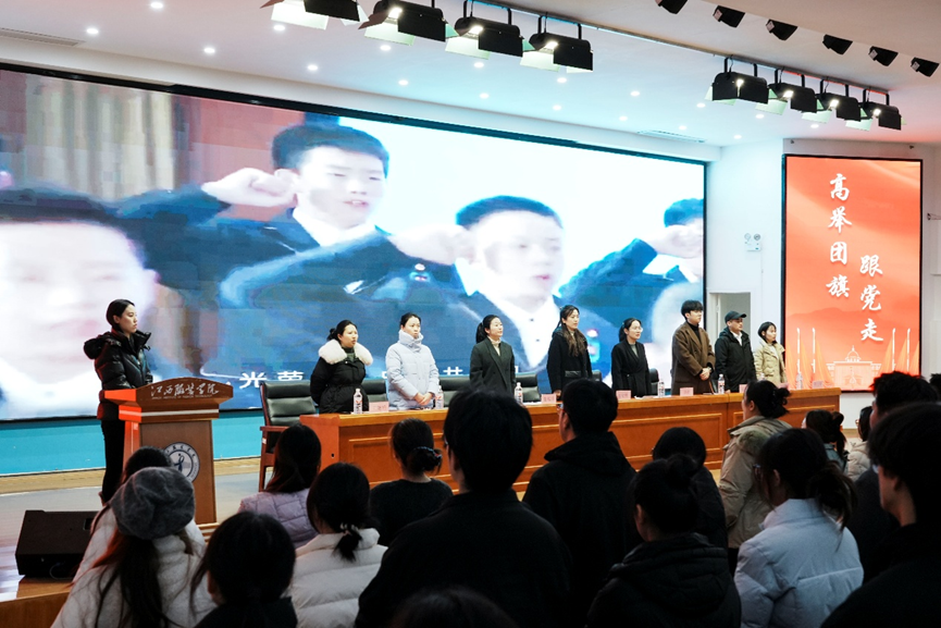 最后,校团委书记孟安然作总结讲话。她首先向受到表彰的先进集体和个人表示热烈祝贺,向长期奋战在团学工作一线的师生骨干致谢。她指出,2025年是实施“十四五”规划的收官之年,也是《中长期青年发展规划(2016—2025年)》的收官之年。一年来,在学校党委和上级团组织的坚强领导下,全校各级团组织坚持“党建带团建”工作主线,紧扣立德树人根本任务,自觉融入学校“大思政”工作格局,在思想引领、组织建设、实践育人、服务青年等方面取得了扎实成效。这些成绩的取得,离不开各级团组织的扎实工作,凝聚着广大团干部的辛勤汗水,更承载着全体江服青年的热爱与担当。面向2026年新征程,她对全校各级团组织、团干部和团员青年提出三点希望:一是团组织筑牢信仰之基,做凝聚引领青年的“坚强堡垒”;二是团干部提升履职之能,做服务带动青年的“先锋表率”;三是团员青年激扬奋斗之志,做强国建设路上的“青春栋梁”。她号召大家以先进为榜样,以创意激扬青春,以奋斗成就梦想,让人生之花在学校高质量发展和民族复兴的生动实践中绚烂绽放!