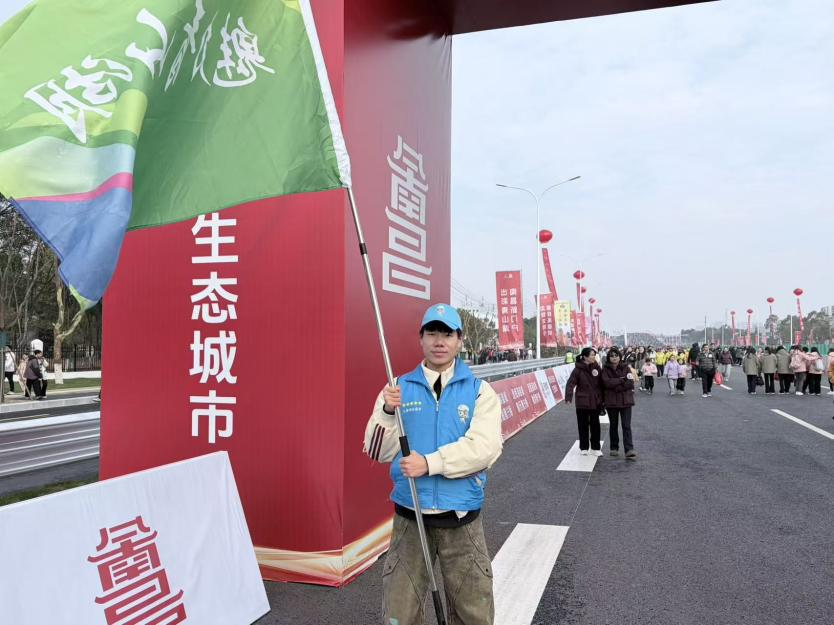我们破晓集结,晨曦启程。我站在隆兴大桥的拱门处,迎着凛冽的寒风挥舞着旗帜,目光紧紧追随着健步队伍的方向。当浩浩荡荡的人群迈着矫健的步伐朝我走来,脸上洋溢着新年的喜悦与活力时,我忍不住跟着人群呐喊“加油”。手中的旗帜被风吹得猎猎作响,但看着大家热情高涨的模样,心里的暖意驱散了所有寒意。能以这样的方式参与到“爱我英雄城”的活动中,用志愿热情点亮新年的开端,我满是自豪。