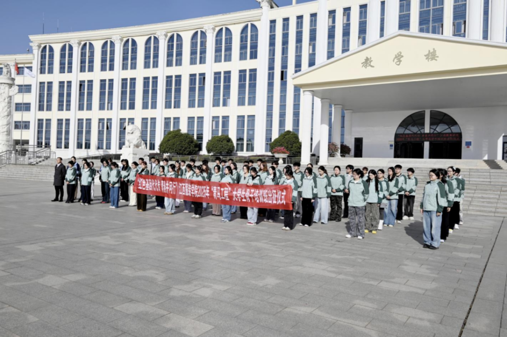 11月28日上午,江西服装学院“红色基因代代传,青春井冈行”2025年“青马工程”大学生骨干培训班出征仪式,在主教楼前广场举行。校党委副书记唐新强出席活动,校团委专职团干、领队老师及培训班全体学员齐聚现场,共同见证这一意义非凡的时刻。仪式由校团委书记孟安然主持。