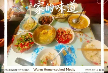 从南昌到海南,这一桌小年夜团圆饭,是跨越山海的家味奔赴。这顿饭最动人的,是“南北风味的碰撞”——南昌的醇厚家常与海南的鲜甜海味,在圆桌上达成完美融合。中间那盘三文鱼刺身,橙红的鱼肉如丝绸般铺陈,是海南海鲜的鲜活;旁边蒜蓉生蚝泛着金黄油光,是海风裹挟的鲜香;白灼黑虎虾的红亮、清蒸鱼的葱香,更是把海岛的“鲜”刻进每一道菜里。而南昌的“魂”藏在细节中:糖醋排骨的酸甜酱汁、腊味拼盘的烟熏咸香、凉拌黄瓜的爽脆,是记忆里家的味道,是无论走多远都忘不掉的乡愁。一桌菜,一半是海的馈赠,一半是家的温度。窗外是海南的暖冬,桌上是南昌的烟火,一家人围坐桌前,筷起筷落,烟火升腾。这跨越山海奔赴而来的团圆,便是小年里最温暖、最动人的仪式感。烟火寻常,岁岁安康,家在,爱在,幸福常在。