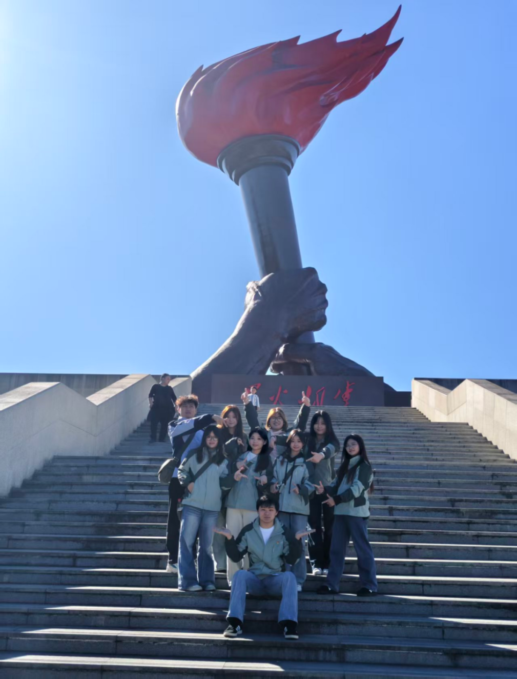 广场上,高耸的红色火炬雕塑巍然矗立,阳光洒在江服学子坚毅的脸庞上,映照着眼中的热忱与执着,让“星星之火,可以燎原”的革命信念在新一代青年心中深深扎根、绵延生长。