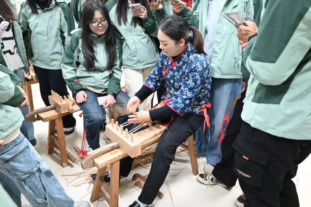 走进草鞋制作的体验课堂,老师傅们手把手传授编鞋技艺。搓草绳、绕鞋头、编鞋身,指尖翻飞间,粗糙的稻草逐渐成型,磨红的手掌让大家真切体会到革命先辈“脚上无鞋天下走”的艰辛与坚韧。一双双亲手编织的红军草鞋,不仅是匠心传承的珍贵见证,更承载着“艰苦奋斗攻难关” 的井冈山精神,成为刻在每一位团学骨干心中的精神信物,时刻提醒着青年一代不忘来路、勇担使命。