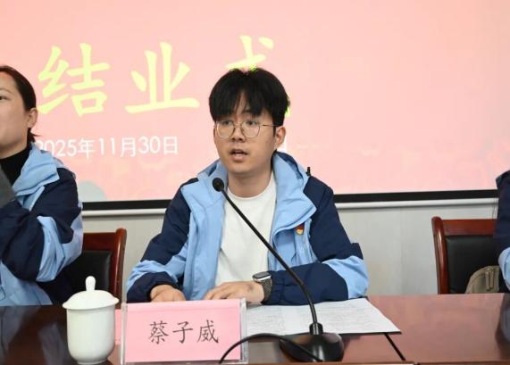 下午,结业仪式在庄严的氛围中举行。胡杨蕊作为学员代表分享此次井冈山培训的收获与感悟,表示将以此次培训为新起点,把井冈山精神融入校园生活,在专业学习与青春奋斗中传承红色基因,为民族复兴贡献青春力量。蔡子威老师作为带队老师代表发言,寄语江服青年骨干:把井冈山的所学、所思、所感、所悟,真正转化为推动自身成长的强大动力。